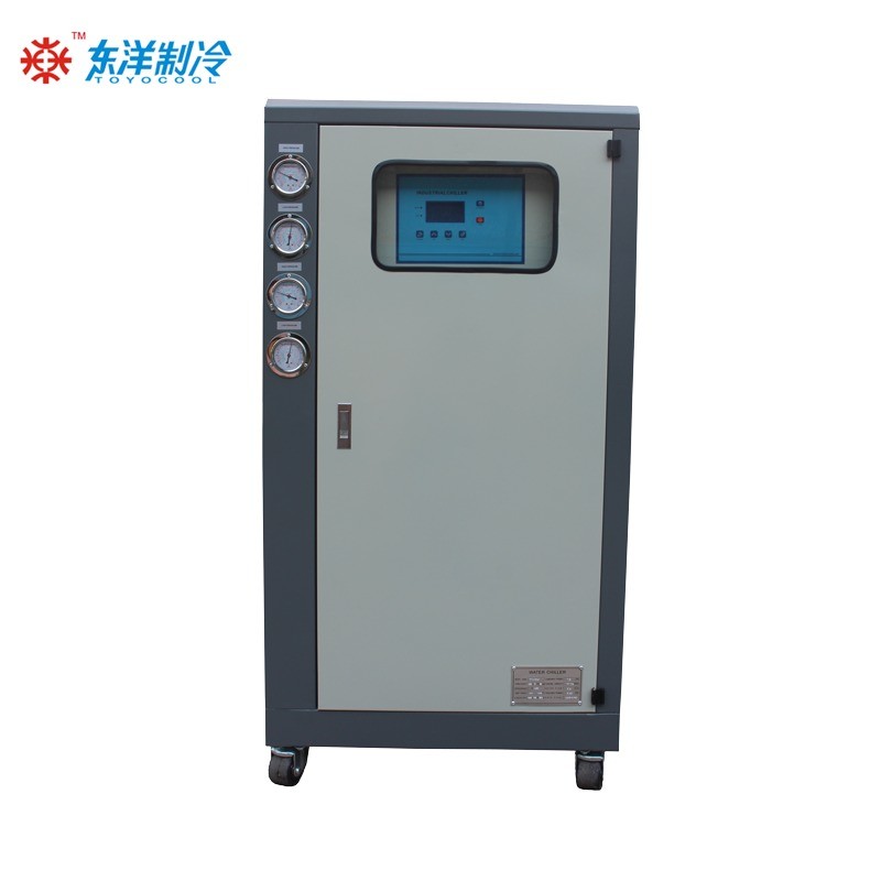 A vacuum plating machine chiller is a machine used to cool equipment in the vacuum plating process. In the vacuum electroplating process, metals or other materials are evaporated and deposited onto a substrate to form a thin film. This process needs to be carried out under certain temperature and pressure conditions, and the cooling system is mainly used to control the temperature inside the equipment and ensure that the plating process is carried out properly.